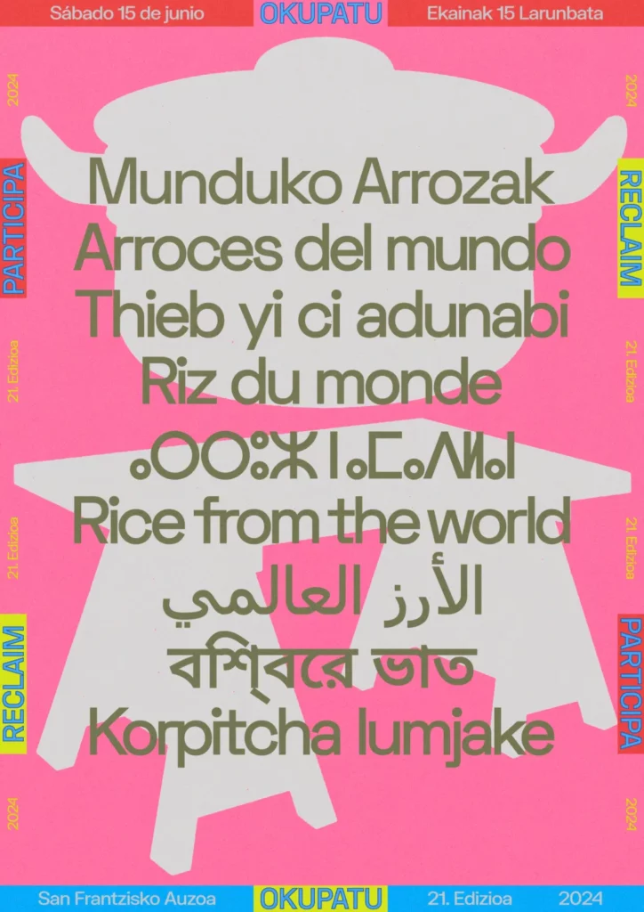 • 13,00: Kalejira reivindicativa por la diversidad por las calles del barrio. Arroces del Mundo con Palestina.