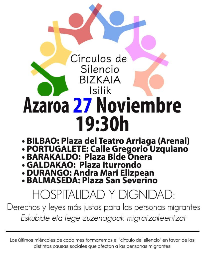 Círculos del Silencio en 6 ciudades de Bizkaia 11/22/2019 Círculos del Silencio en 6 ciudades de Bizkaia Leer más »