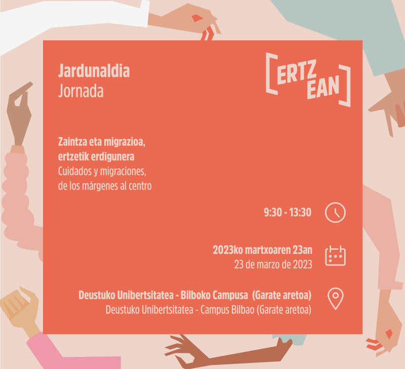 Jornada «ERTZEAN. Cuidados y migraciones, de los márgenes al centro» 03/13/2023 Jornada «ERTZEAN. Cuidados y migraciones, de los márgenes al centro» Leer más »