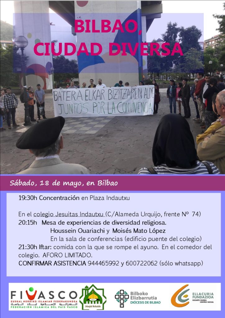 Os hacemos participes de una actividad en Bilbao, que por cuarto año consecutivo organizamos entre la Mezquita de Rekalde – Fivasco. Federacion Islámica del País Vasco, la Diócesis de Bilbao/Bilboko Elizbarrutia y Fundación social Ignacio Ellacuría