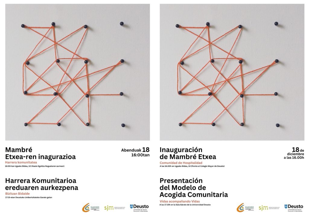 Desde la Fundación Ellacuría os invitamos a celebrarlo con la presentación del modelo de acogida Comunitaria que desde el Servicio Jesuita a Migrantes (SJM) desarrollamos y que desde la Universidad de Deusto se ha convertido en modelo de investigación académica. Este modelo – Vidas acompañando vidas / Bizitzan bidaide – es una herramienta para hacer visible las capacidades que esta sociedad, cada vez más diversa, tiene para ser acogedora y acogida. Esta investigación que ha tenido como punto de partida la experiencia que las entidades vinculadas al SJM tenemos, va a estar precedida de la inauguración de la comunidad de hospitalidad, Mambré Etxea, ejemplo de este modelo de acogida comunitario.