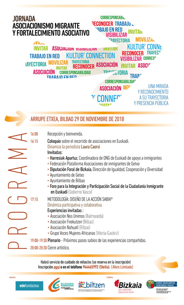 Os invitamos a la I Jornada sobre Asociacionismo Inmigrante, organizada por Kultur ´connection (Fundación EDE, Biltzen y Fundación Ellacuría)