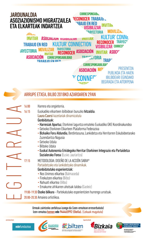 Kultur Connectionek (EDE Fundazioa, Biltzen eta Ellacuría Fundazioa) antolatutako etorkinen erakunde sorketaren inguruko 1go jardunaldira.