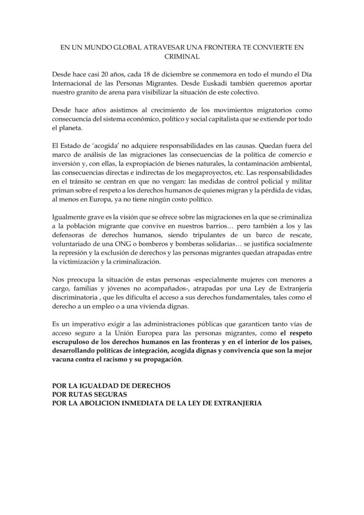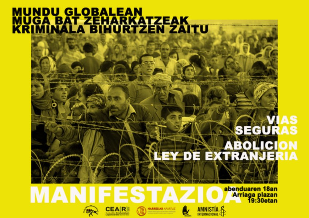 Nuestra Fundación, junto con otras organizaciones -Amnistía Internacional, OngiEtorri Errefuxiatuak, SOS Racismo, CEAR- convoca a la manifestación por los derechos de las personas migrantes.
