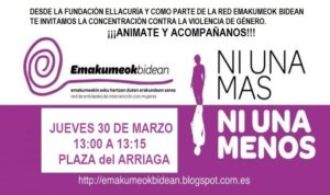 13:00 La Red Emakumeok Bidean nos invitan a la concentración mensual en la plaza del teatro #Arriaga, para manifestarnos contra la #violenciamachista.