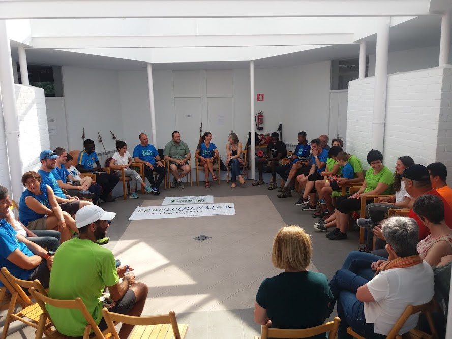 La Transpirenaica Social Solidaria llegó el pasado 8 de junio a Bilbao para empezar lo que sería la 5a travesía Transpirenaica Social Solidaria, este año con el lema Un Mundo por la Paz. La TSS tiene como objetivo la inclusión social de todas las personas, dicho de otra forma, que cada persona encuentre su lugar en el mundo. Tenemos una visión de un mundo en el que cabemos todos independientemente de sus orígenes. Consideramos entre nuestros valores la acogida incondicional. Relatamos en estas líneas lo hecho durante los días de la travesía. Podemos hablar de la travesía desde lo meramente objetivo pero también desde lo vivido y compartido. Nos mueve el agradecimiento a cuantas personas nos ayudan, el proyecto no sería posible sin la implicación directa de personas y entidades.