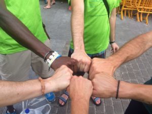 ¡Empezamos la #TSS17 en Cabo de Higuer, Hondarribia (Euskadi) con el propósito de llegar el próximo 21 de julio en el Cap de Creus, (Catalunya) caminando por UN MUNDO POR LA PAZ!El sol había salido hacía pocos minutos, la brisa del mar y los nervios que teníamos a flor de piel hacían de ese momento, una experiencia más que especial. Kalixa, Concejal de Deportes y Cultura del Ayuntamiento de Hondarribia nos acompañó con su familia y aprovechó para entregarnos un «makilla» a cada uno de nosotros. Después de bañarnos en el mar, desayunamos con Txomin, Alcalde de Hondarribia en la asociación Emeki Emakume Elkartea. ¡Muchas gracias Hondarribia por la acogida y el cariño! ¡El makilla nos ayudará a cruzar el Pirineo!